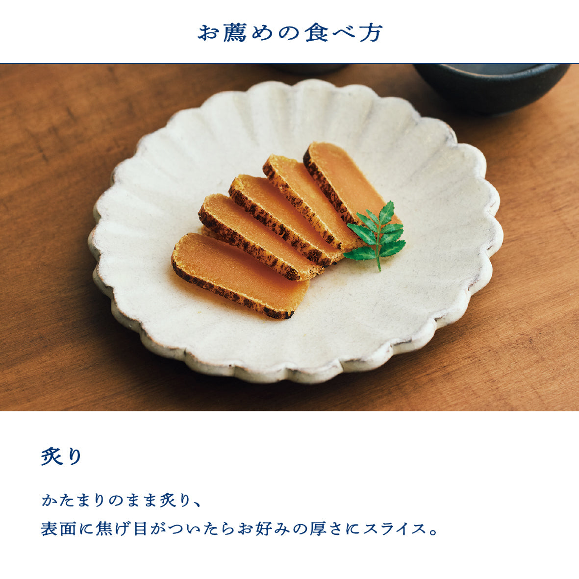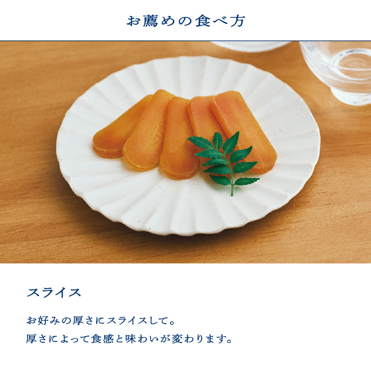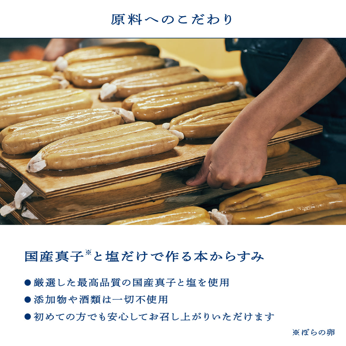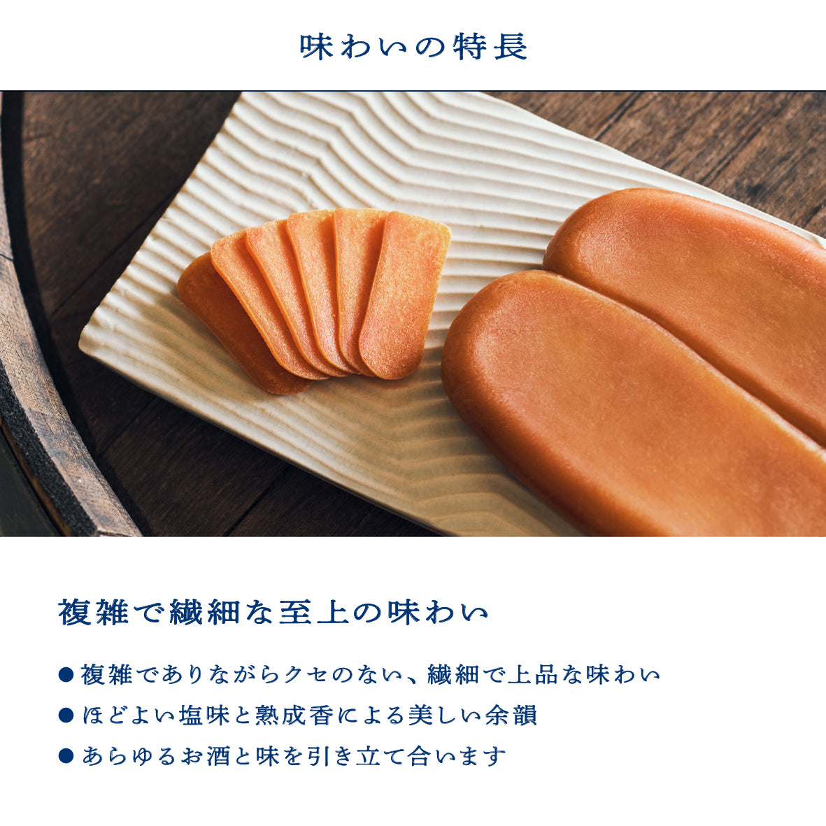 開封してそのまま食べられるので、高品質なからすみを少量・手軽に楽しみたい方にお薦めの商品です。