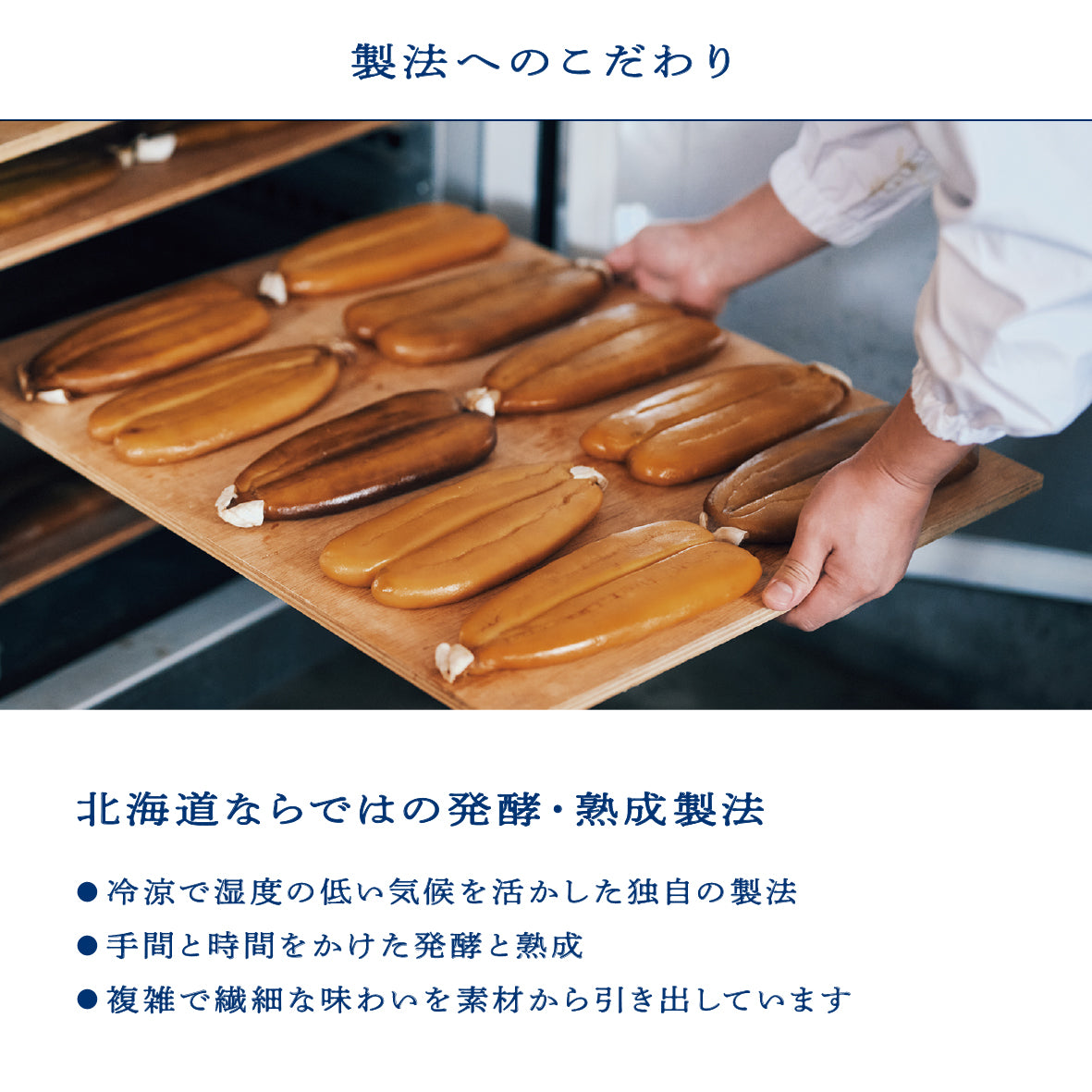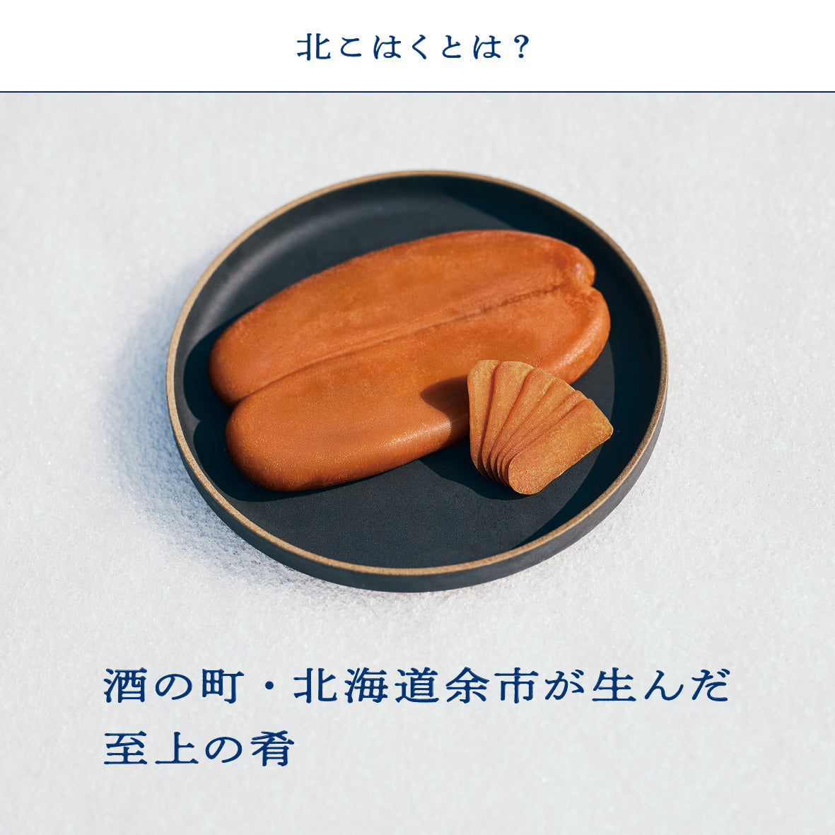 北こはくは繊細で上品な味わいを持ち、魚卵特有のクセを全く感じさせません。ほどよい塩味の先にはチーズのような熟成香があり、日本酒はもちろん、ウイスキーや焼酎、一部のワインなどにもよく合います。